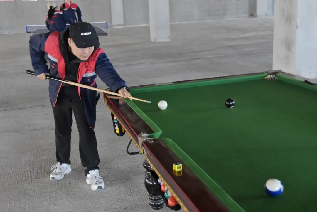 文体比赛现场,选手们精神抖擞、斗志昂扬。气排球场上,队员们默契配合、精准传接,时而奋力扣杀,时而巧妙拦网,每一个精彩瞬间都引来阵阵喝彩;桌球台前,选手们凝神专注、精准走位,一杆杆精妙击球展现着高超技艺;乒乓球桌旁,快攻、防守、旋转球轮番上演,选手们身姿敏捷、反应迅速,尽显竞技魅力。场外,啦啦队员们加油声、呐喊声此起彼伏,现场氛围热烈而高涨。