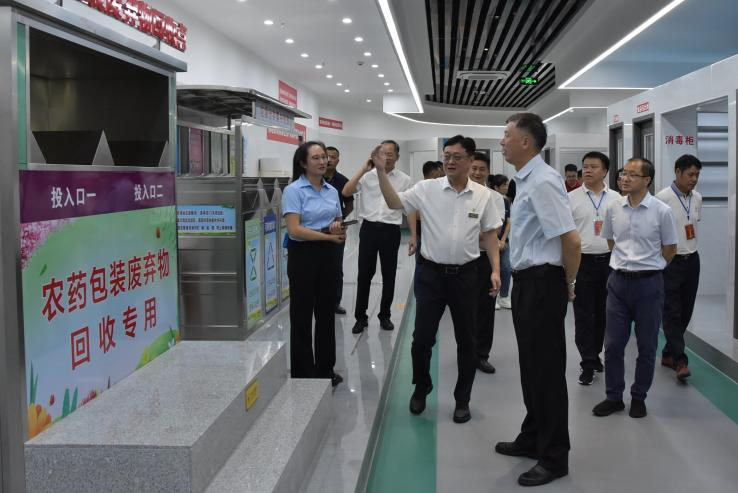 在根据国家标准进行的城市建设的基础设施设备建设实景展示区域,刘传林一行还针对垃圾分类、智能化物理防治有害生物等问题进行深入探讨。