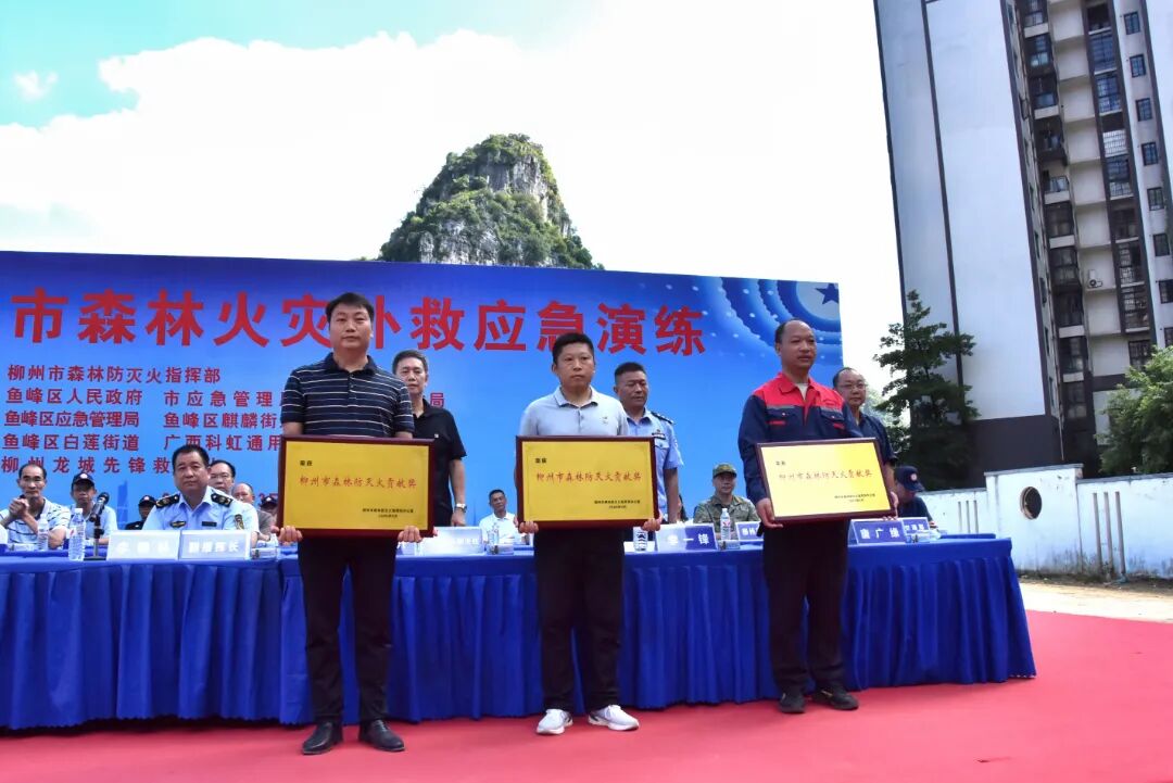 演练完成后,颁奖仪式隆重举行。市应急管理局副局长王庆然为广西科虹公司颁发“柳州市森林防灭火贡献奖的单位颁奖”,公司副总经理杨自华接过奖牌并表示:“这份奖项是激励更是鞭策。作为航空应急救援的“应急救援尖兵”,我们将继续强化实战能力,在更多应急战场上当好“空中卫士”,为柳州乃至广西的应急救援事业注入更强力量!”